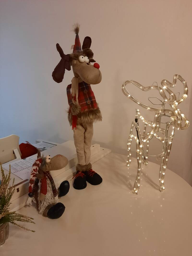 Übers Wochenende 27/28.12 war ich in Wien bei meinen Fischen und habe am Samstag Claudia getroffen die am 26.12 ihren 50er hatte. Sonntag nach dem Mittagessen (es gab Salat und ein Fertig Menü aus der Mikrowelle) bin ich mit etwas an Weihnachtsdeko zurück aufs Schloss gehfahren. Zum Sonntagstreff habe ich gut 25 Liter Blutorangenpunsch gemacht und die Tische mit meinen Wichteln, Elchen und Lichtern geschmückt.